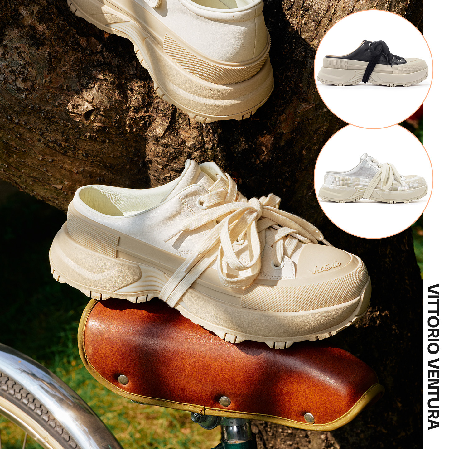 VITTORIO VENTURA薇薇燃 牛皮一脚蹬包头厚底板鞋休闲拖鞋