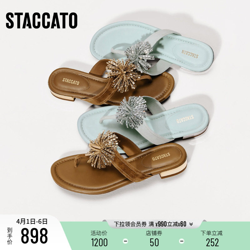 思加图2026新款烟花繁星复古夹脚人字拖平底外穿凉拖鞋女EDU12BT6