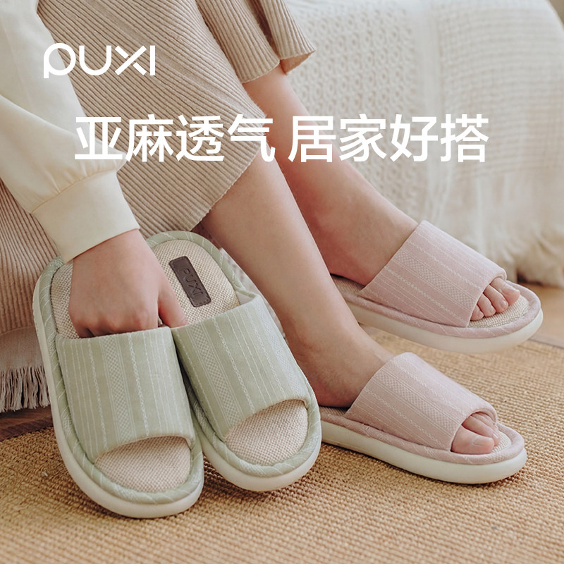 朴西2026新款亚麻拖鞋女士四季透气防脚汗室内静音情侣亚麻拖鞋男