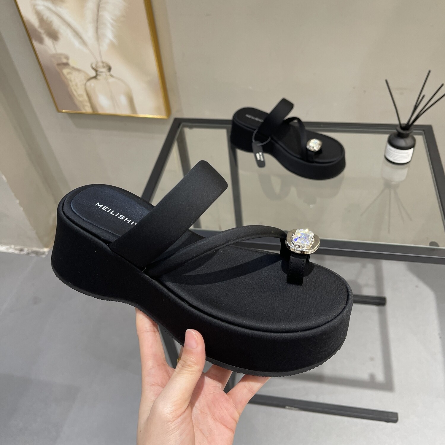 saturdaymode女鞋仙女风一字带凉拖2026夏季爆款薄底坡跟时尚拖鞋