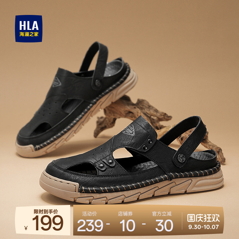 HLA/海澜之家男鞋新款夏季潮流时尚皮凉鞋百搭透气沙滩鞋休闲拖鞋