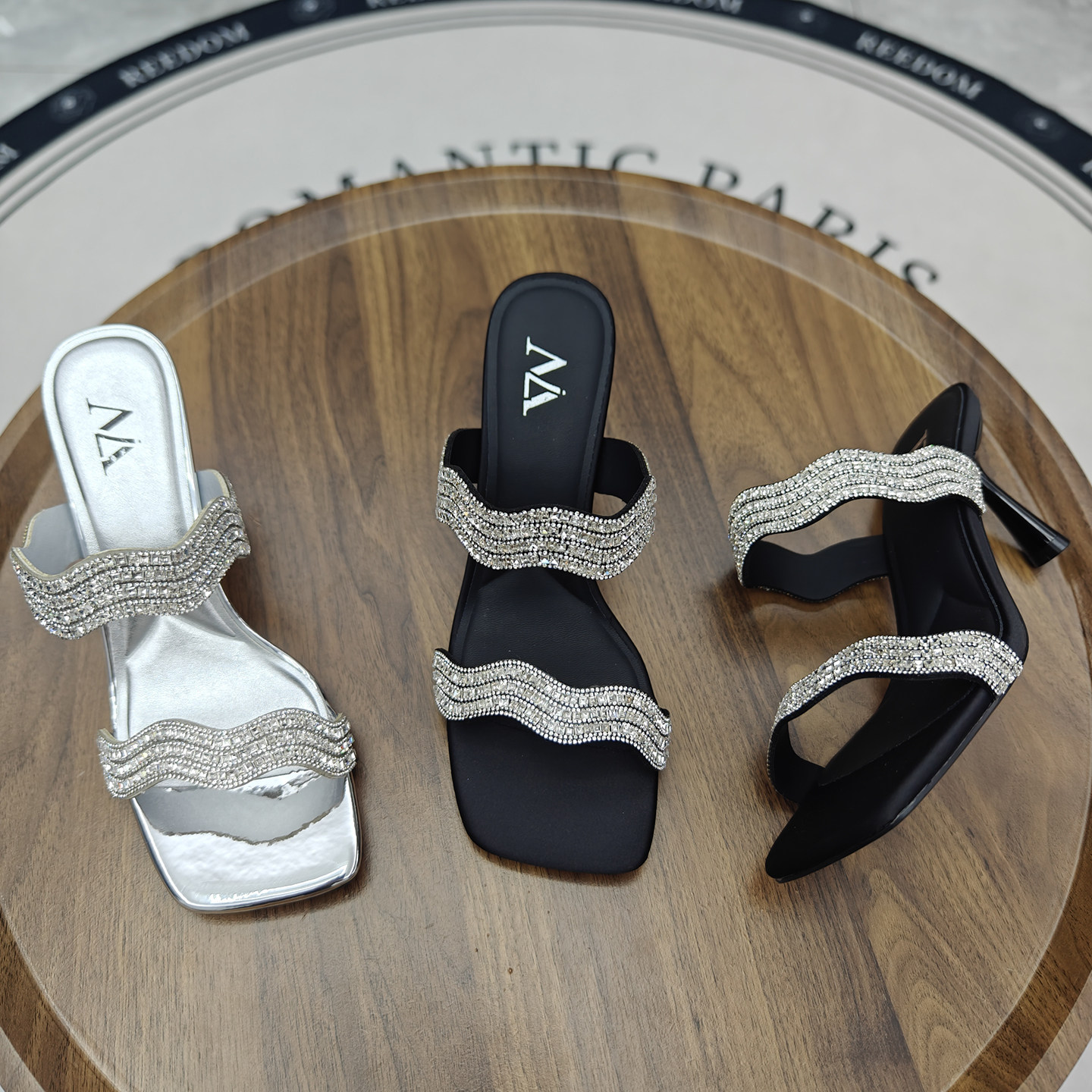 【幻梦星光】千百度钻带凉拖鞋女夏季气质粗跟时尚拖鞋可外穿百搭