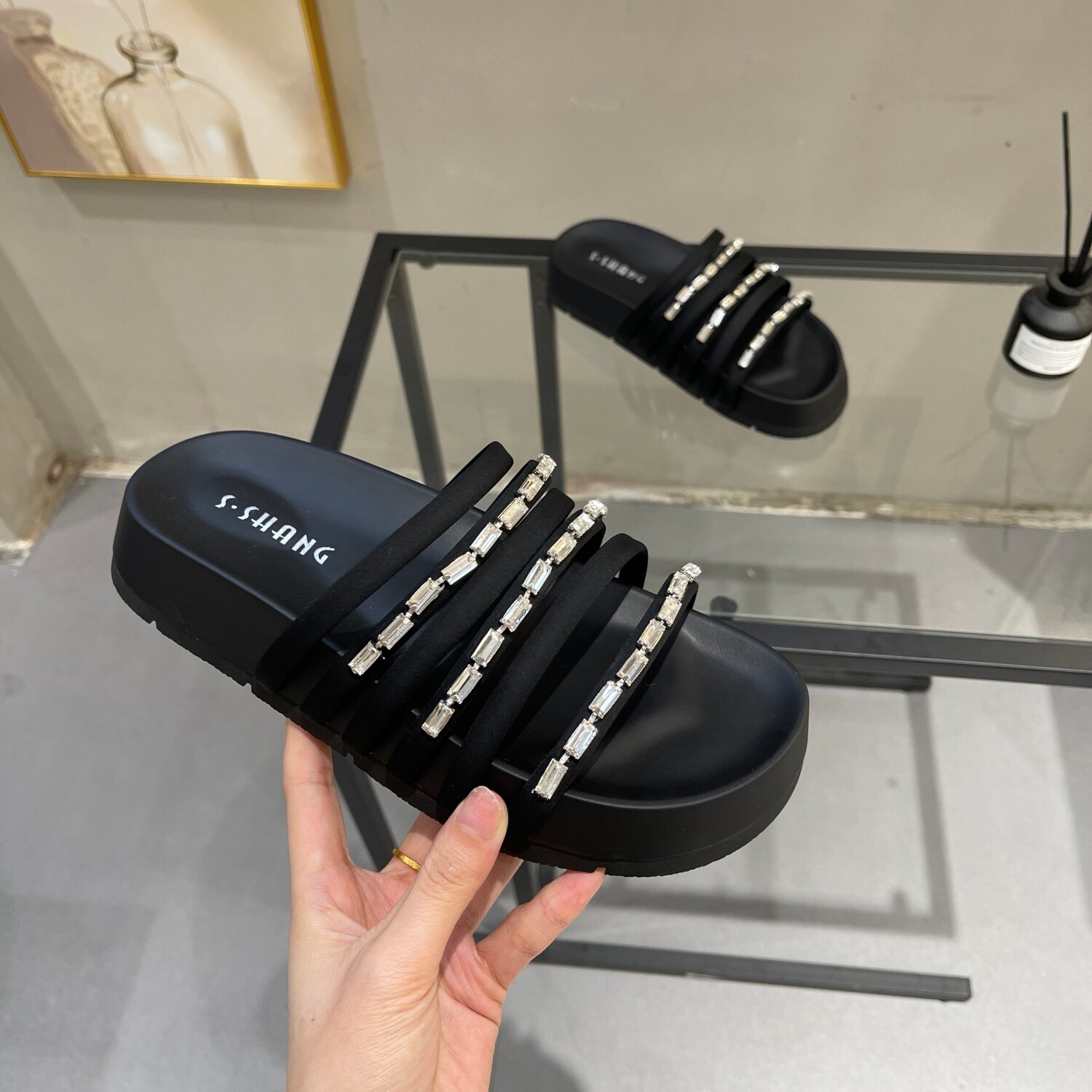 水钻渐变一字带高跟拖鞋女夏外穿2026新款人鱼妖姬性感粗跟凉拖鞋