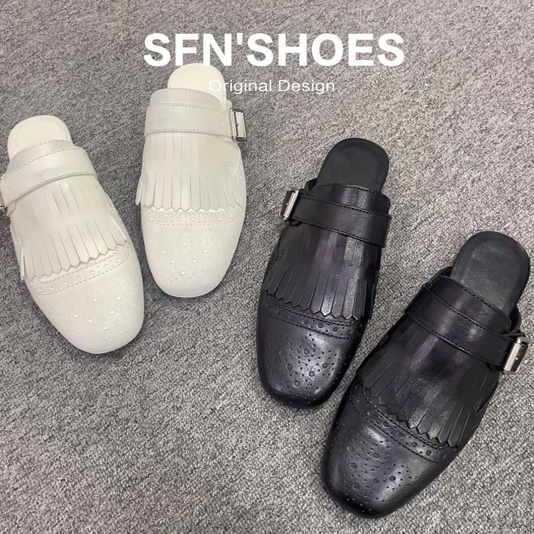 复古布洛克雕花流苏包头半拖鞋女2026夏外穿懒人穆勒鞋平底凉拖鞋
