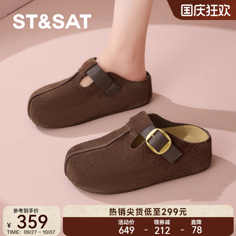 Snowelf女鞋厚底真皮勃肯鞋女2025秋季新款外穿一脚蹬包头半拖鞋
