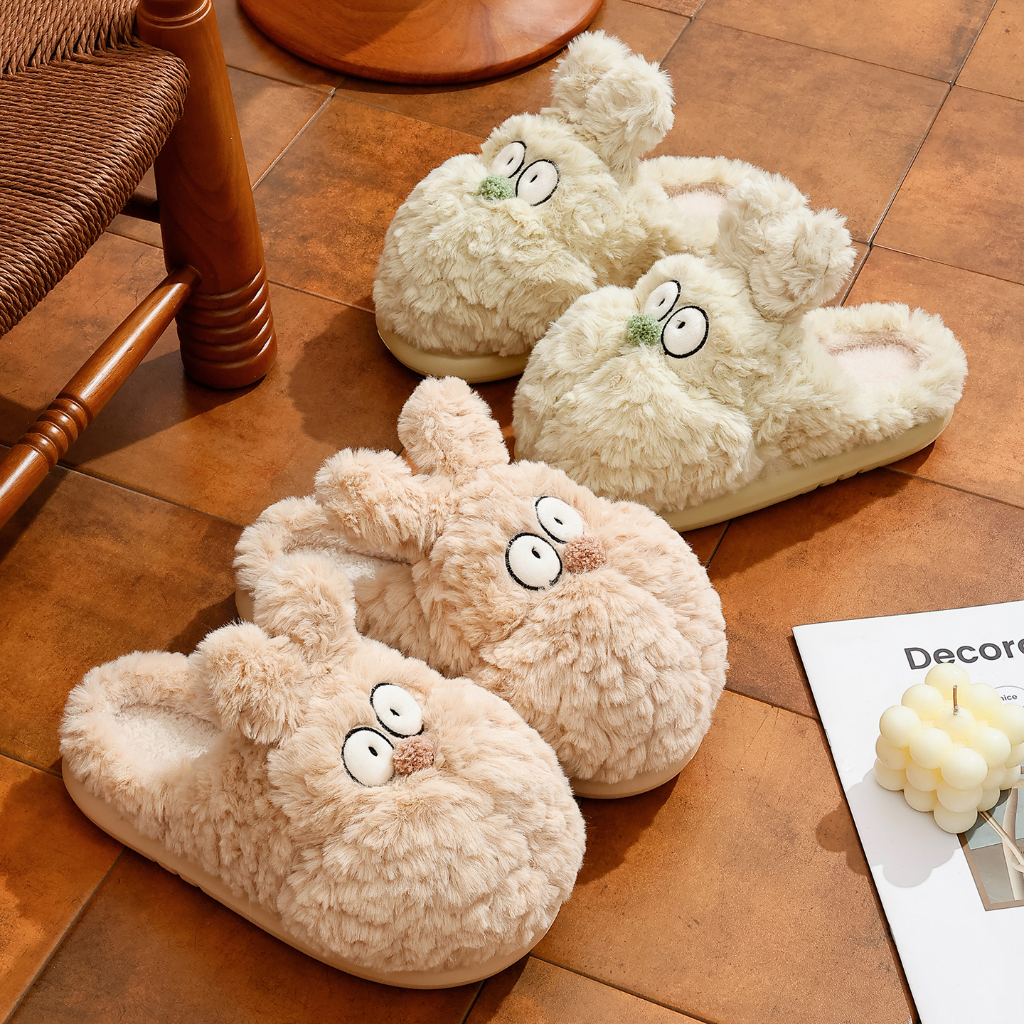 可爱兔子粉色松糕猴厚底毛毛鞋女外穿2025新款增高加绒一字棉拖鞋