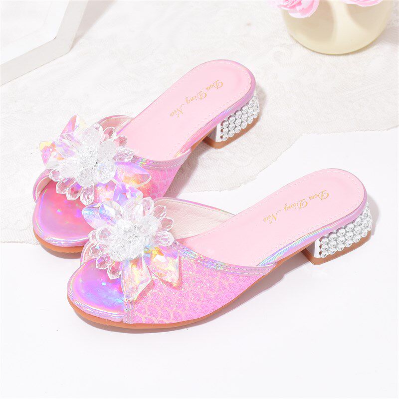 极速女童拖鞋爱莎小女孩水晶鞋软B底洋气公主鞋闪亮高跟鞋儿童凉