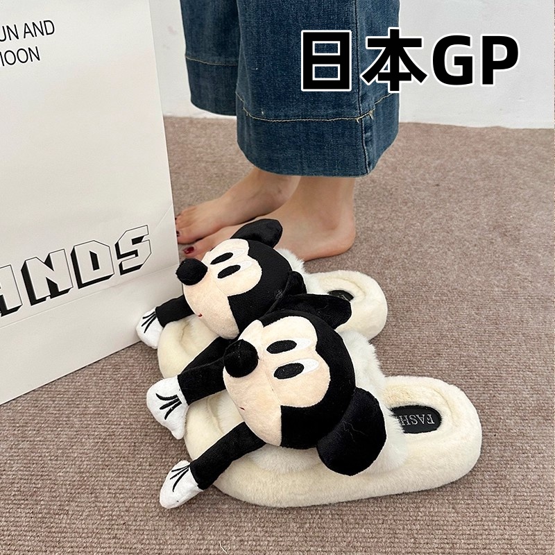 日本GP可爱卡通动漫米奇毛毛拖鞋女2025秋冬新款外穿森系居家棉鞋