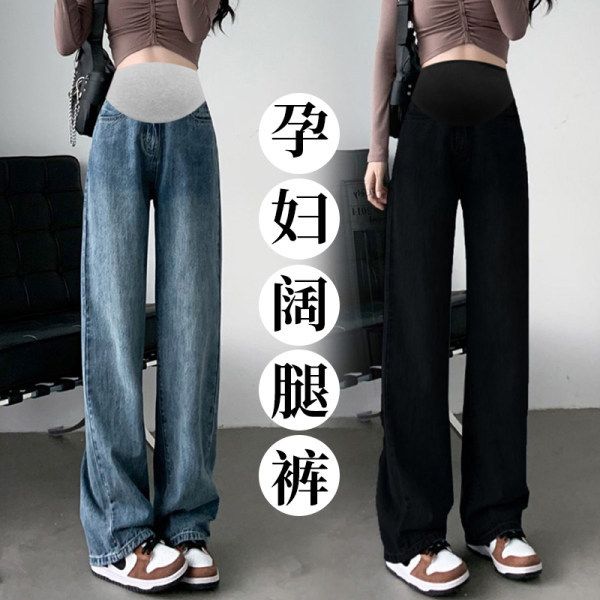 孕妇裤秋冬外穿牛仔裤新款潮妈高腰托腹裤宽松显瘦直筒拖地裤