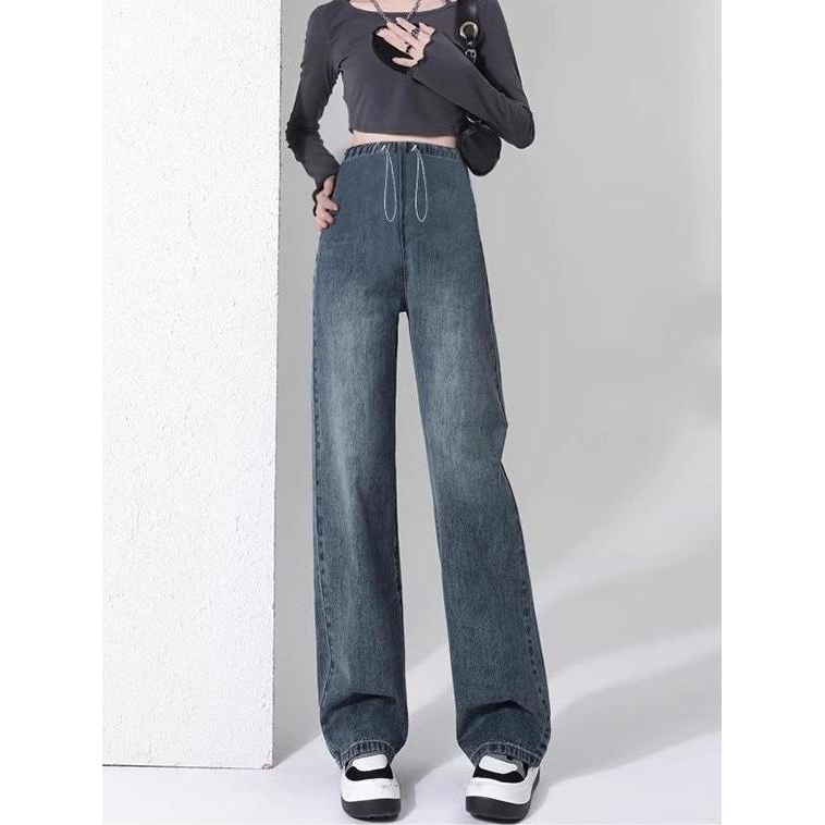 高腰牛仔阔腿裤女春秋2025年新款显瘦宽松小个子垂感拖地直筒裤子