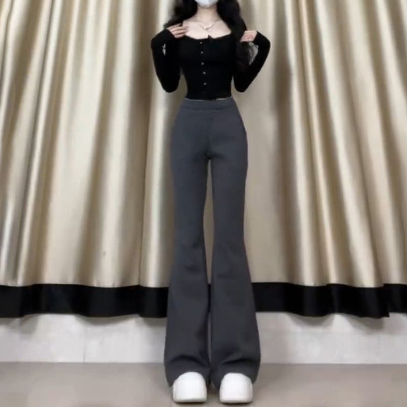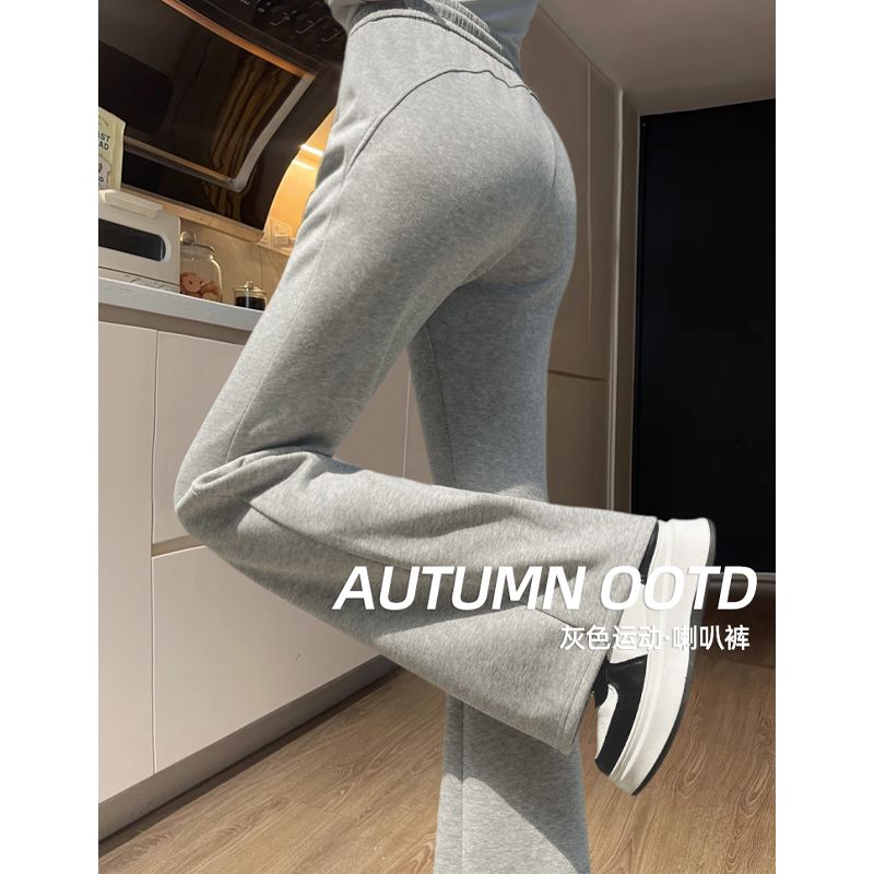 灰色微喇叭运动裤女春秋2025新款马蹄裤休闲垂感高腰修身显瘦卫裤