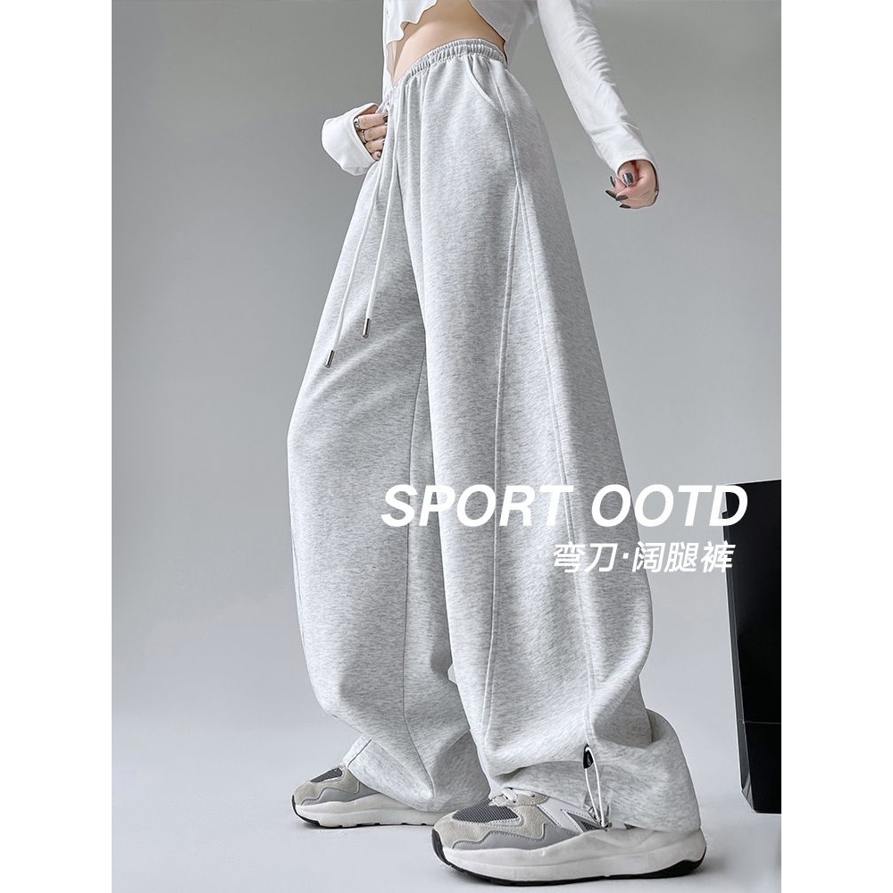 加绒秋冬弯刀卫裤2025新款直筒镰刀裤子宽松休闲裤运动版阔腿裤女