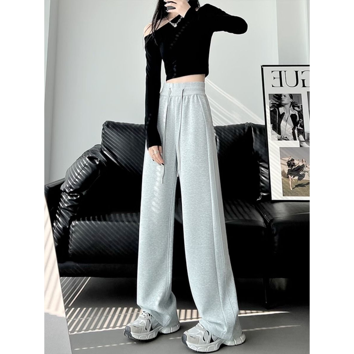 深灰色阔腿裤女春季2025新款高腰宽松显瘦休闲裤窄版直筒运动卫裤