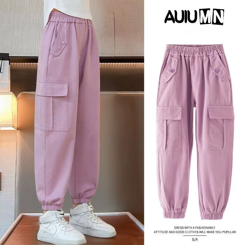 女童裤子春秋工装裤2025年新款中大童卫裤春装儿童运动束脚裤春季