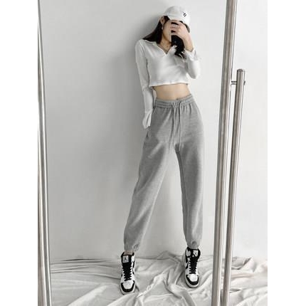 春夏装新款卫裤夏高腰休闲灰色运动裤女宽松束脚小个子潮ins