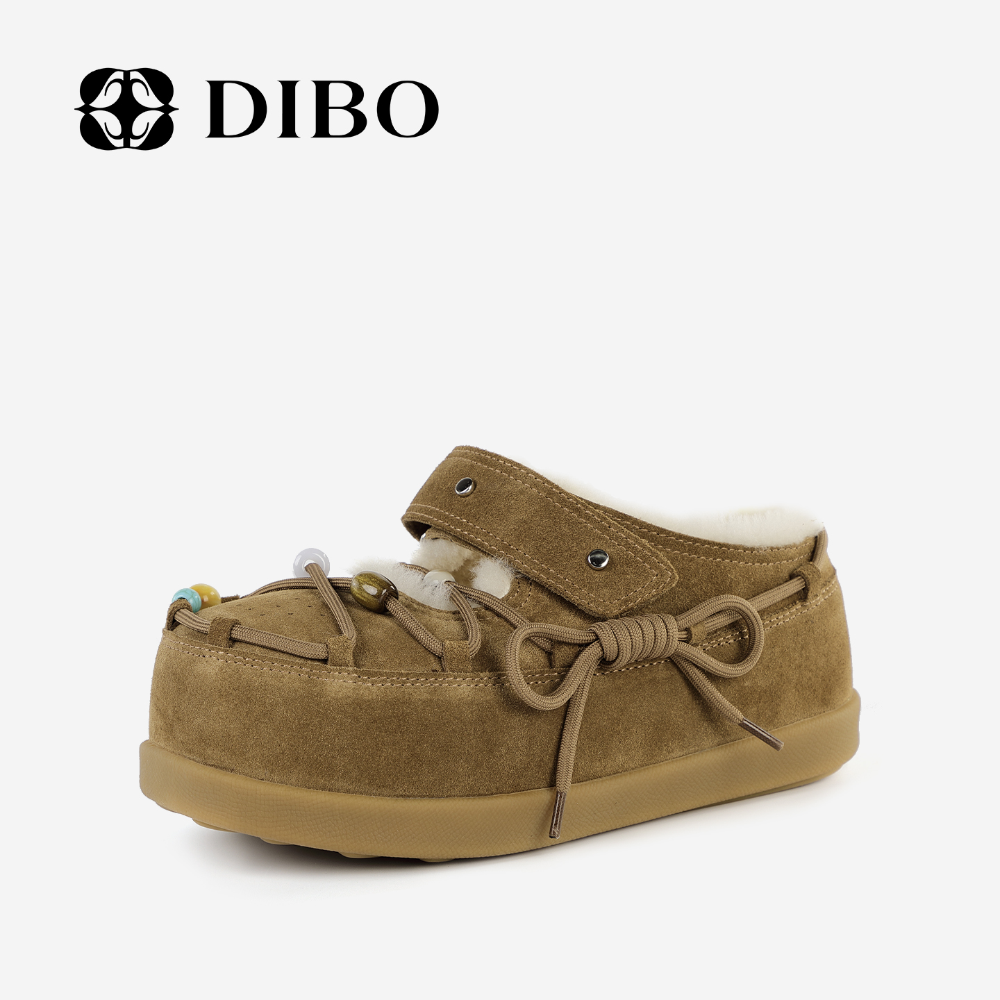 DIBO碲铂潮流厚底羊毛雪地靴2025年冬季新款懒人一脚蹬翻毛半拖鞋