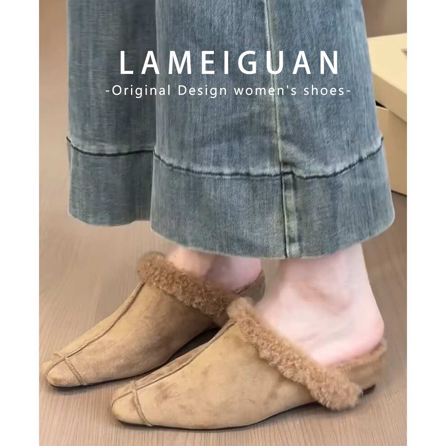 法式毛毛鞋女2025秋冬季新款加绒保暖棉鞋单鞋外穿平底包头半拖鞋