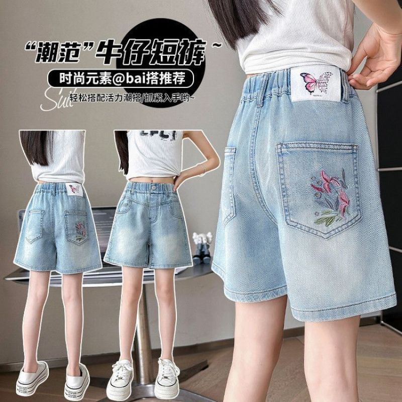 女童牛仔短裤夏装刺绣工艺儿童中大童百搭宽松休闲夏季薄款五分裤