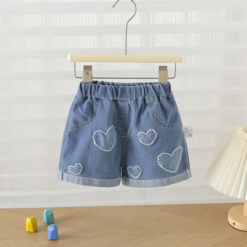 夏季新款儿童韩版洋气爱心牛仔短裤百搭薄款牛仔裤