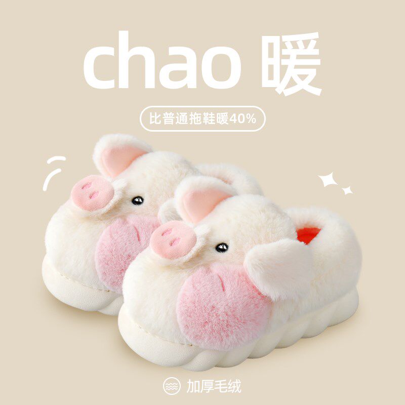 踩屎感棉拖鞋女冬季室内居家可爱小猪厚底防滑毛S绒保暖包跟棉鞋