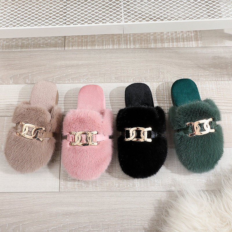 秋冬新款室内保暖毛绒拖鞋女可爱糖果色毛球可外穿防滑时尚棉拖鞋