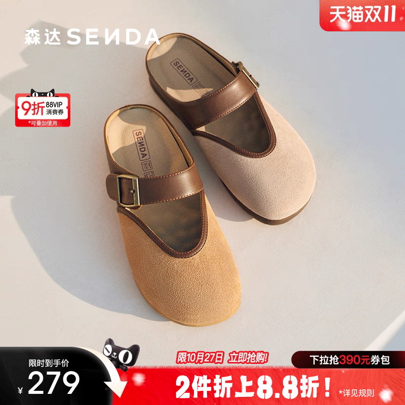 妙丽官方旗舰店包头半拖鞋女外穿夏季新款法式复古平底一脚蹬凉拖