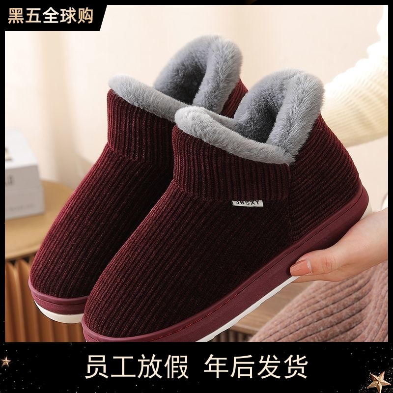 高帮棉鞋男冬季保暖外穿棉拖鞋防滑厚底踩屎感室内居家包跟棉拖鞋