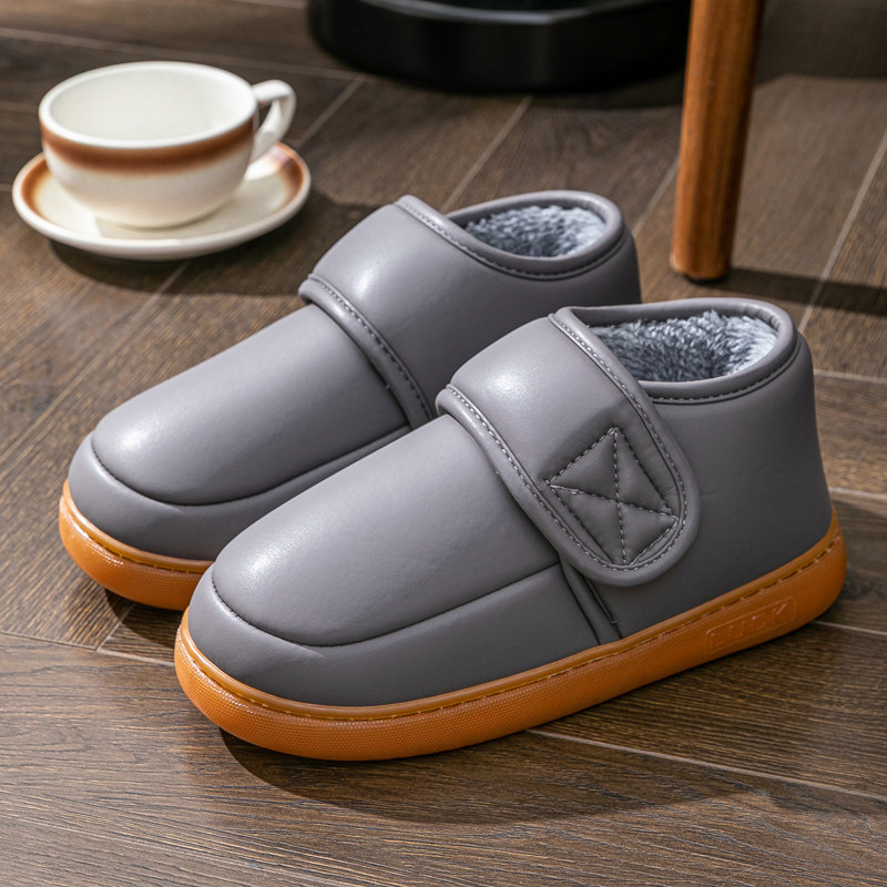 皮面防水棉拖鞋防滑老人r冬季男款女士包跟室内家居加厚毛绒牛筋
