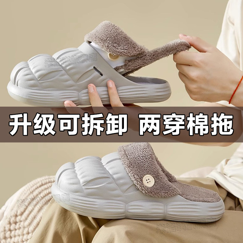 防水棉拖鞋可拆卸洗冬季女士软厚底eva防滑O情侣一对居家室内新款
