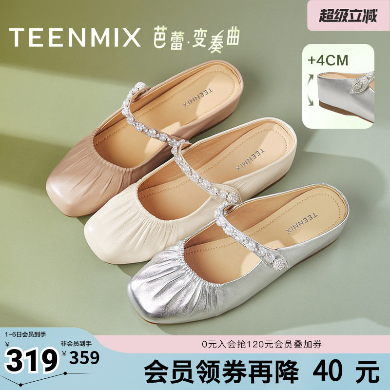 天美意芭蕾变奏曲内增高软底包头半拖鞋女外穿凉拖穆勒鞋夏季新款
