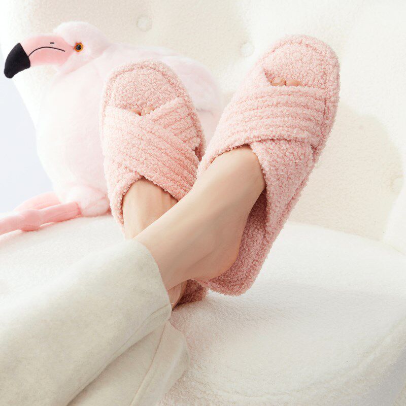 女冬季保暖泰迪绒室内家居软底家居拖鞋防水防滑静音简约厚底不臭