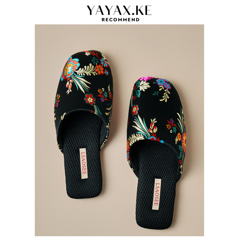 棉拖鞋女秋冬季2024新款中式刺绣居家防滑室内地板V民族风绣花四