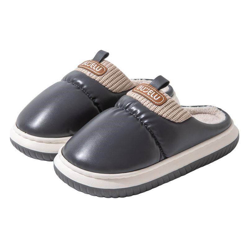 路路佳旗舰店家居秋冬PU鞋面防水室内瓷砖地面鞋底防滑男女棉拖鞋