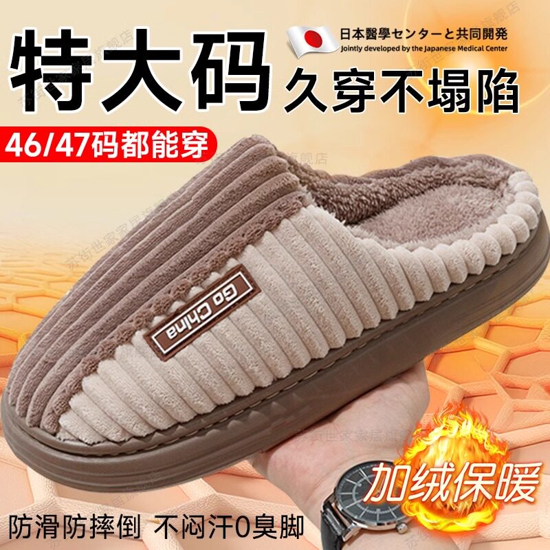 加大脚丫棉拖鞋男款大码冬季男士专用46 47室内家居外穿防滑保暖