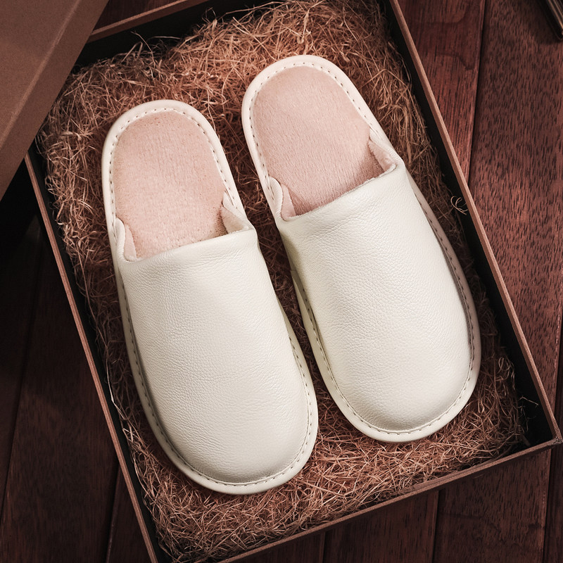 极速韩版真皮白色棉拖鞋男女w秋冬季室内居家用厚底防滑牛皮面防