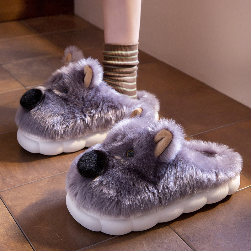 可爱二哈特大码棉拖鞋o男士36到51超大厚底毛绒加大号冬季棉拖男