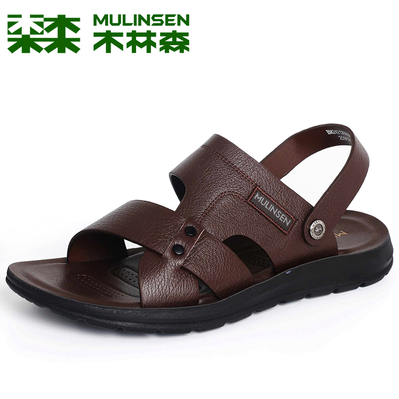 木林森凉鞋男士夏季休闲爸爸鞋舒适露趾防滑凉拖鞋头层牛皮沙滩鞋
