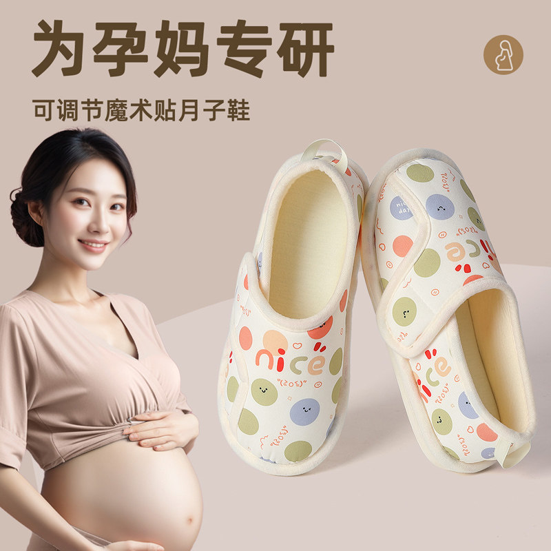 月子鞋夏季薄款89月份包跟软底防滑孕妇产后透气布拖鞋女士春秋款