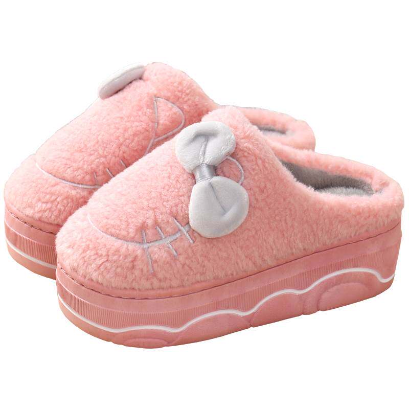 新品棉拖鞋女厚底包跟高r跟室内可爱蝴蝶结家居拖鞋冬保暖棉鞋外