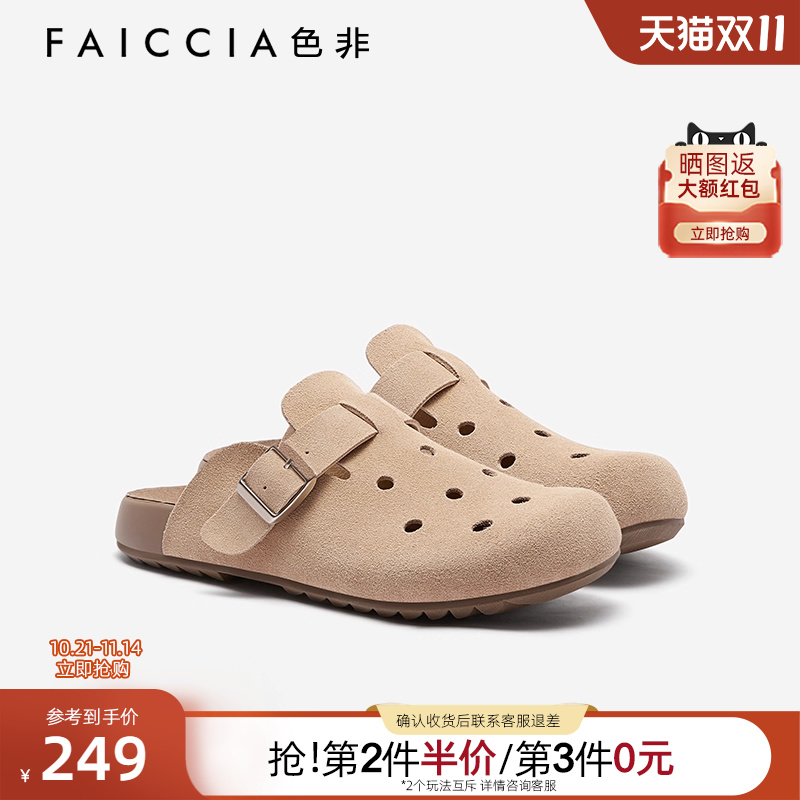 色非复古休闲懒人洞洞勃肯鞋2025春夏新款一脚蹬外穿包头女拖鞋