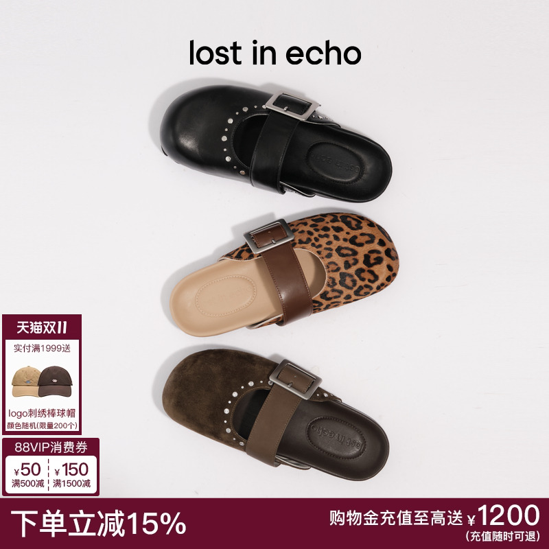 lost in echo2025冬季新款一字时尚牛皮包头芭蕾勃肯拖鞋一脚蹬