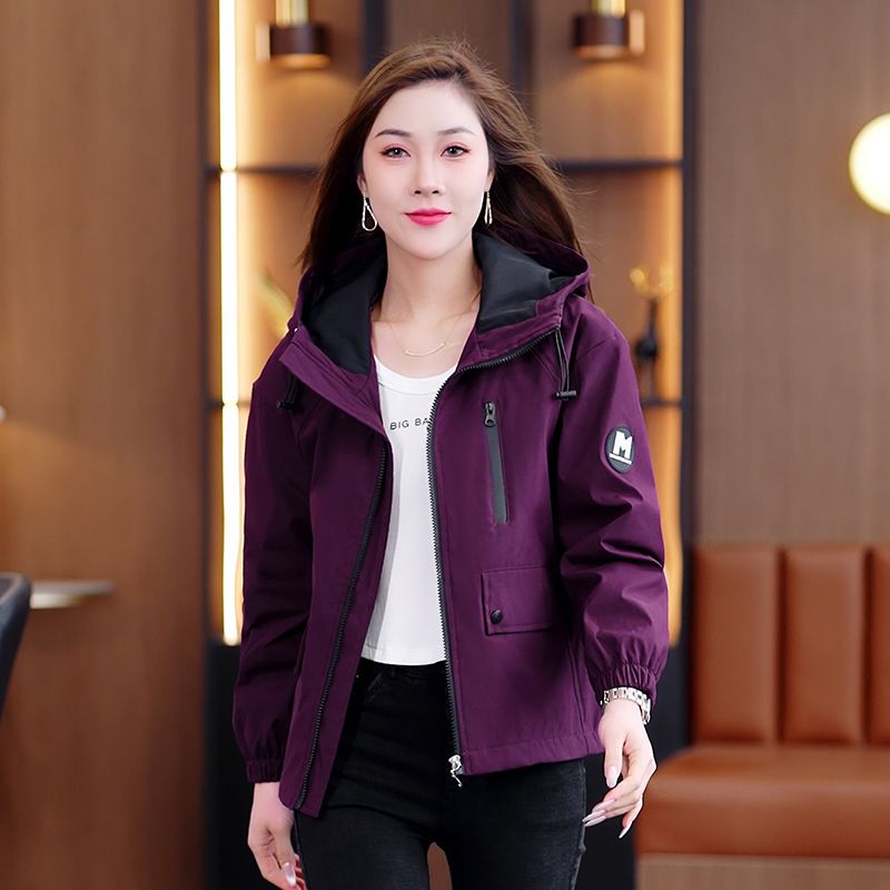 休闲女士连帽春秋短外套风衣女新款中年妈妈小个子工装风开衫夹克