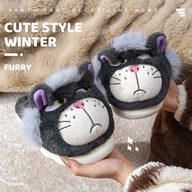 可爱棉拖鞋女冬季新款卡通u猫咪居家室内加绒保暖厚底防滑情侣棉