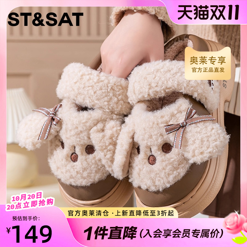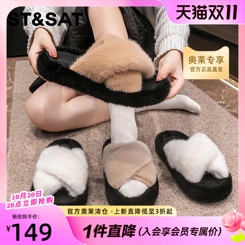 St&Sat/星期六秋冬季女士家居休闲毛毛拖鞋加绒保暖通勤棉拖鞋子