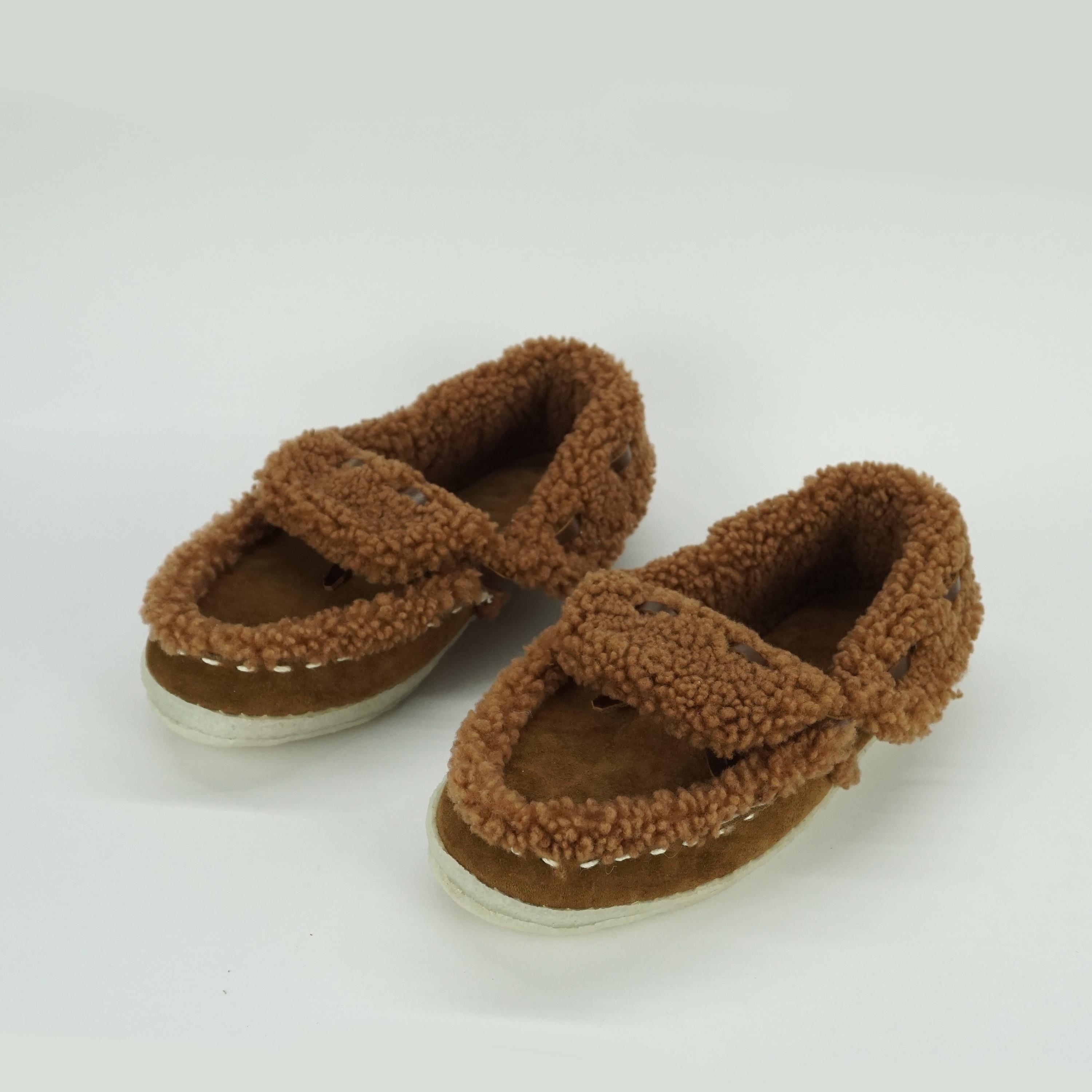 北欧郊野木屋别墅女款手工制作羊卷毛皮保暖翻口毛毛室内拖鞋