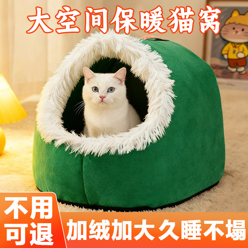 猫咪长毛拖鞋窝大号猫窝封闭式狗窝深度睡眠冬季保暖猫屋幼猫睡袋