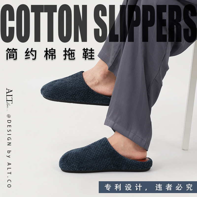 简约居家c棉拖鞋女绒面牛筋底防滑情侣家居家用秋冬季保暖地板拖