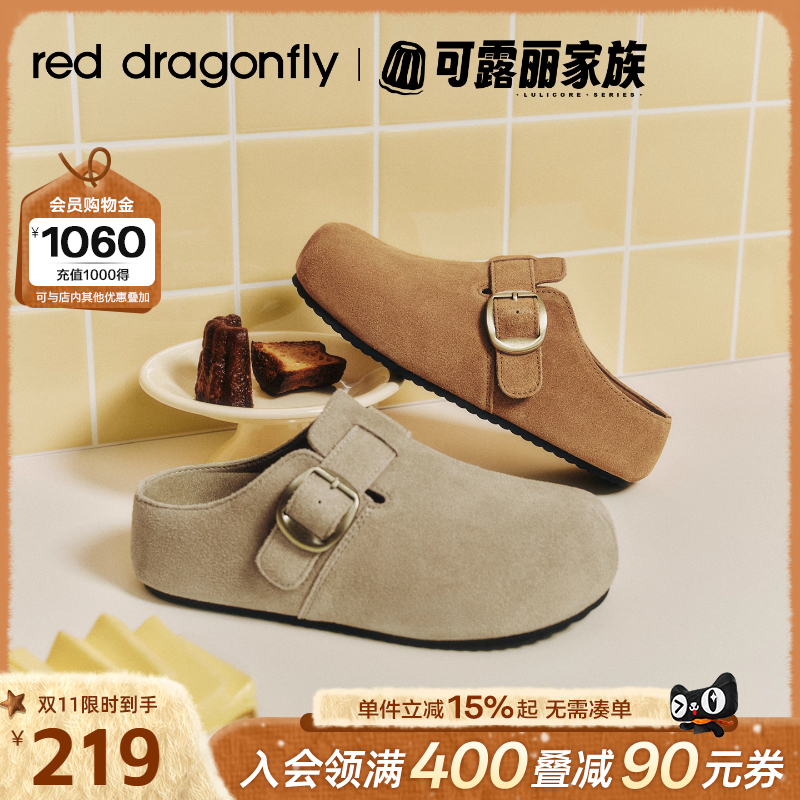 红蜻蜓厚底勃肯鞋女半拖2025秋季新款外穿一脚蹬软底增高穆勒拖鞋