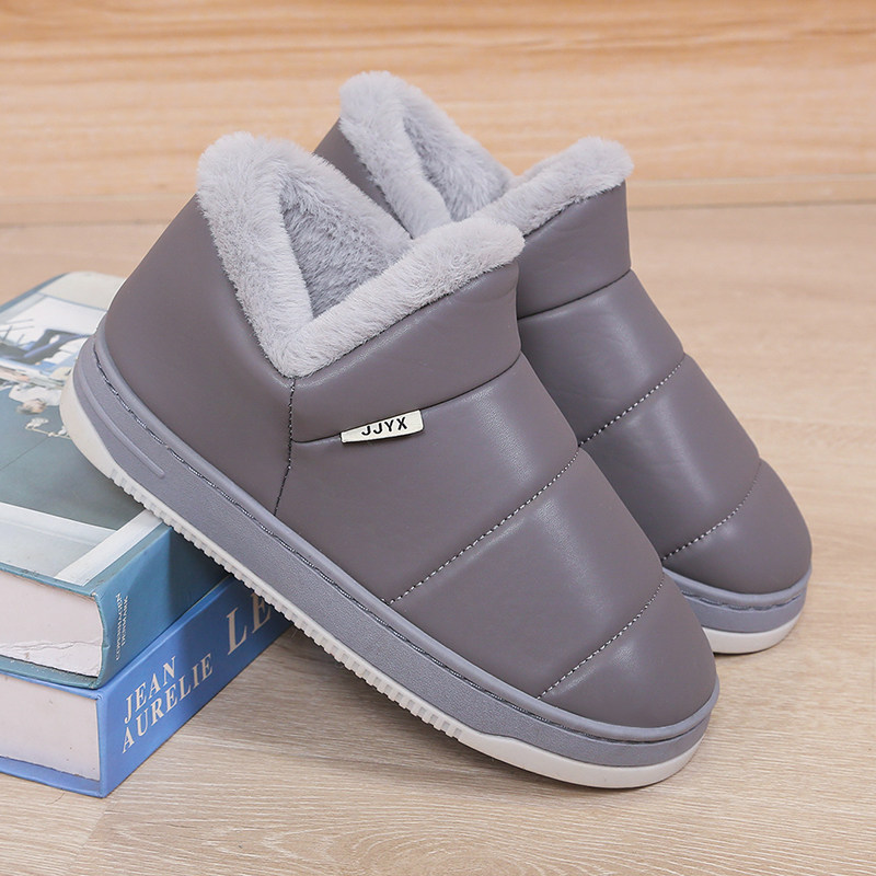 防水防滑皮面棉拖鞋包跟男款女士厚底室内家居鞋大尺码保Y暖棉鞋