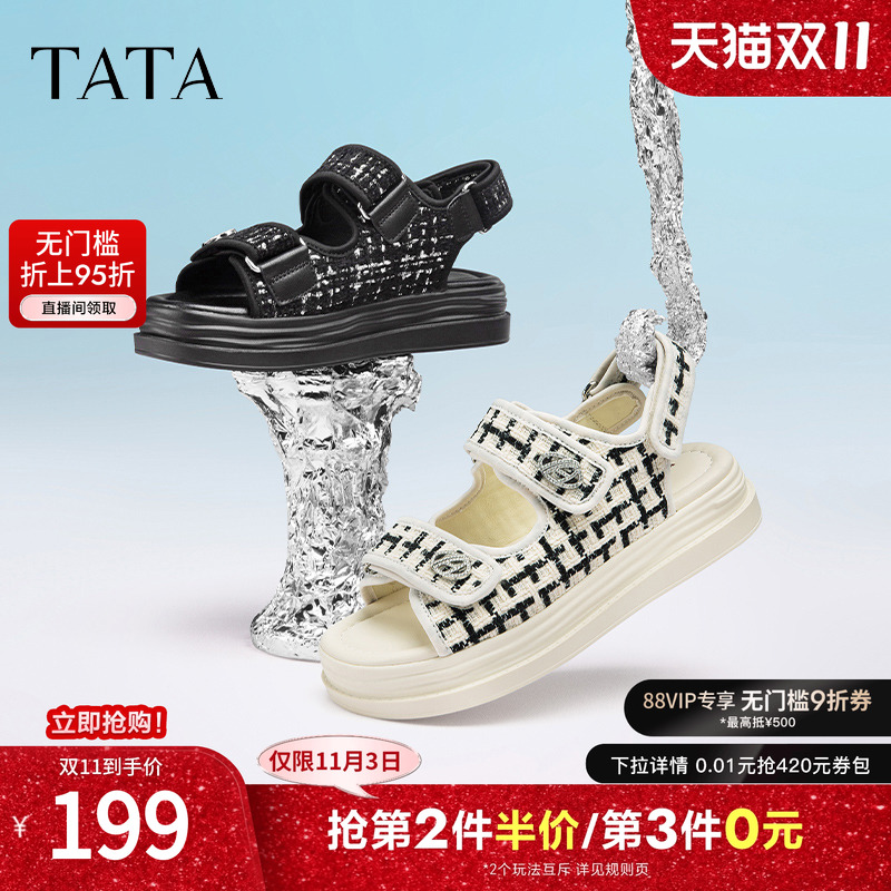 Tata他她小香风凉鞋女休闲百搭松糕运动凉拖鞋夏季新款GOX14BL4